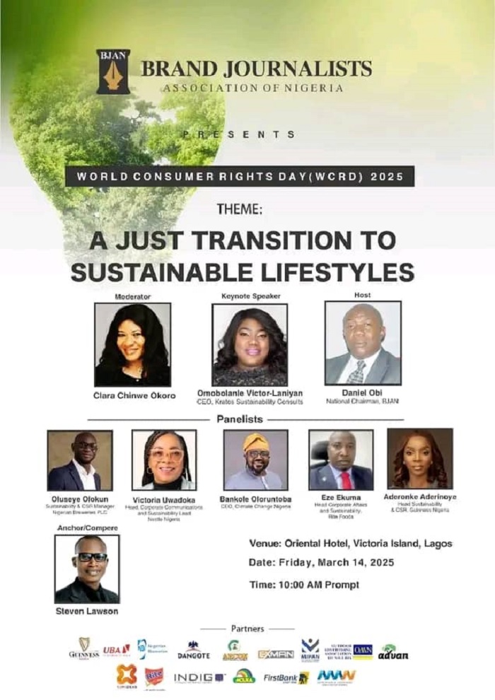Brand Journalists Association of Nigeria (BJAN) is set to celebrate World Consumer Rights Day on March 14, 2025, with a forum focused on sustainability.