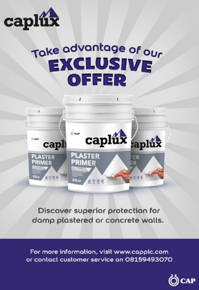For more information about Caplux Plaster Primer, please visit our website: www.capplc.com or contact the customer care team on customercare@capplc.com and 08159493070
