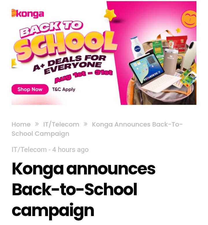 Konga has officially announced the launch of its Back To School Campaign. The campaign began on August 1st and will run through August 31st, says the leading e-commerce platform.